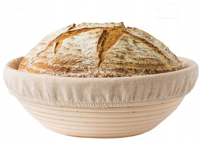 Корзина из ротанга для расстойки хлебного теста 25 см + льняной чехол, чтобы тесто дышало