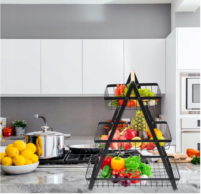 КОРЗИНА ДЛЯ ФРУКТОВ ОВОЩЕЙ СПЕЦИЙ МЕТАЛЛ ЧЕРНАЯ 3 УРОВНЯ 3415