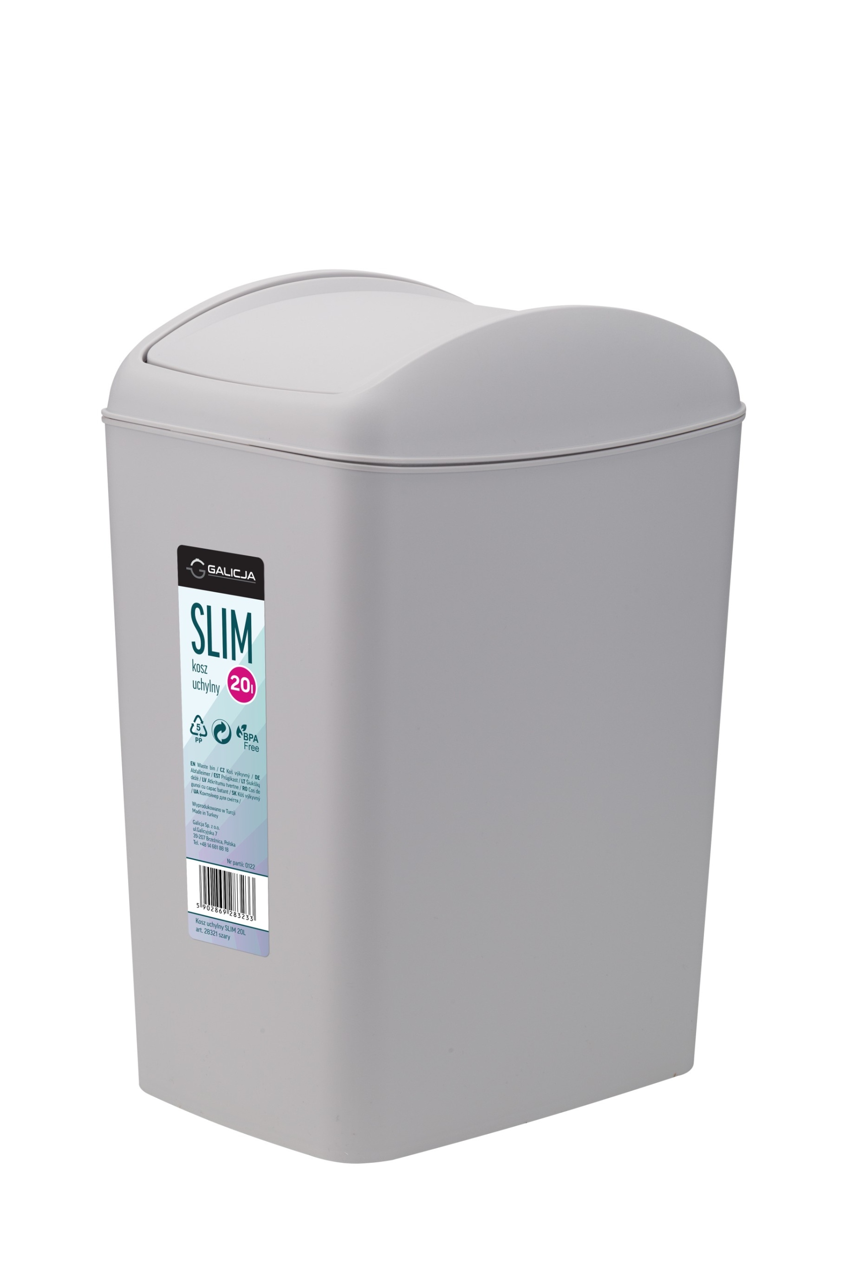 КОШИК УХИЛЬНИЙ SLIM 20Л СІРИЙ 36х14,5см