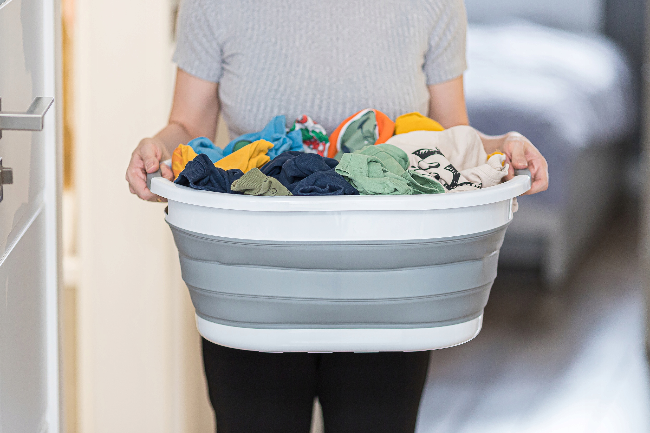 Корзина складной прачечной изготовлена из высококачественного пластика и силикона.