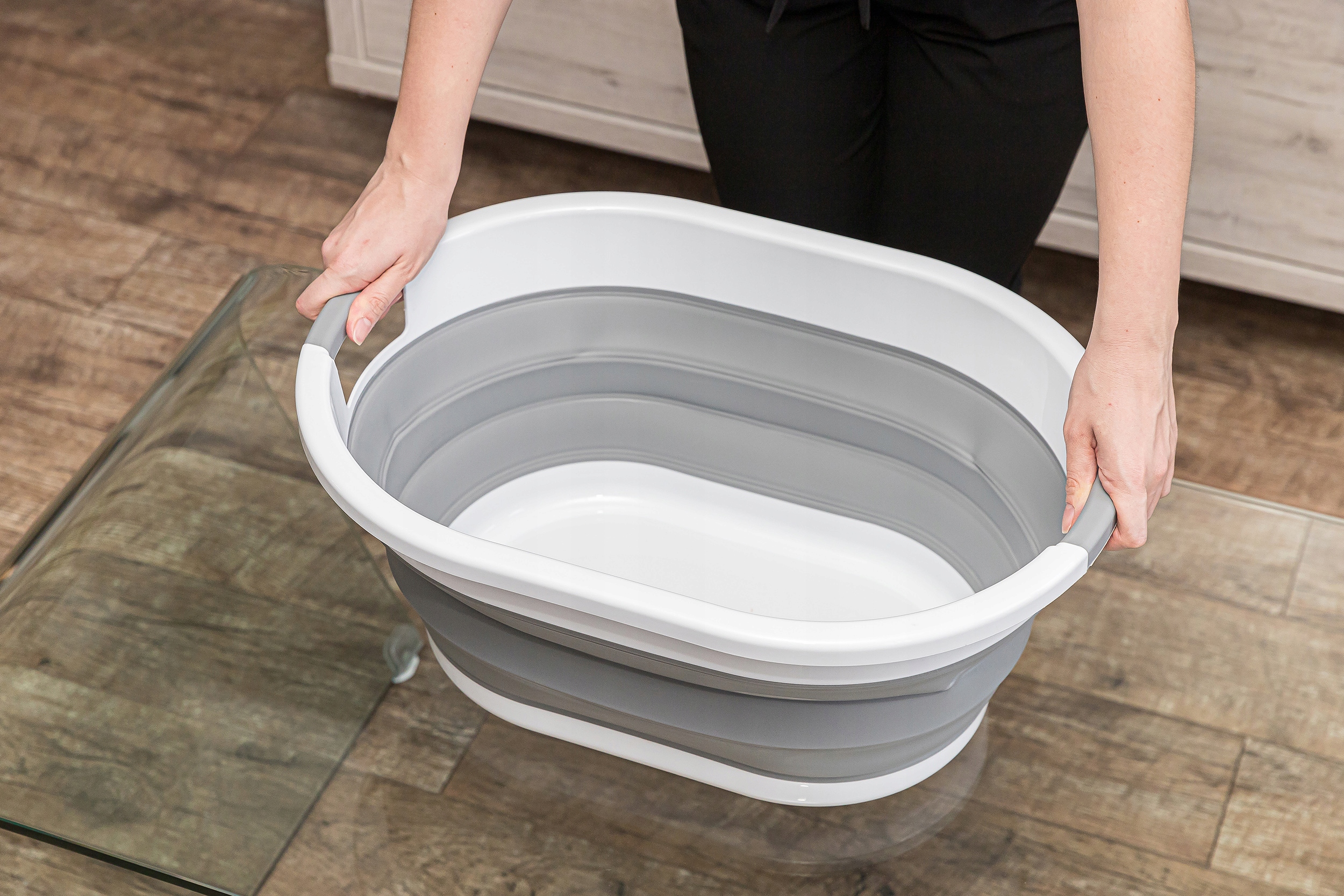 Корзина имеет специальную силиконовую структуру, которая позволяет распространять и складывать миску простым и быстрым способом. Одним движением руки мы набиваем дно, чтобы распределить чашу, складывая ее, положив ее на прямую поверхность и прижимаем края корзины вниз.
