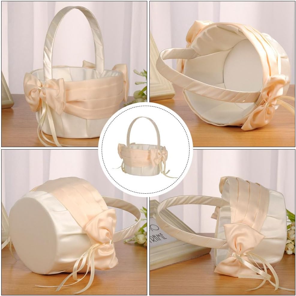 Корзина с предварительным склоном для цветов Белая сатиновая корзина для свободных хлопьев