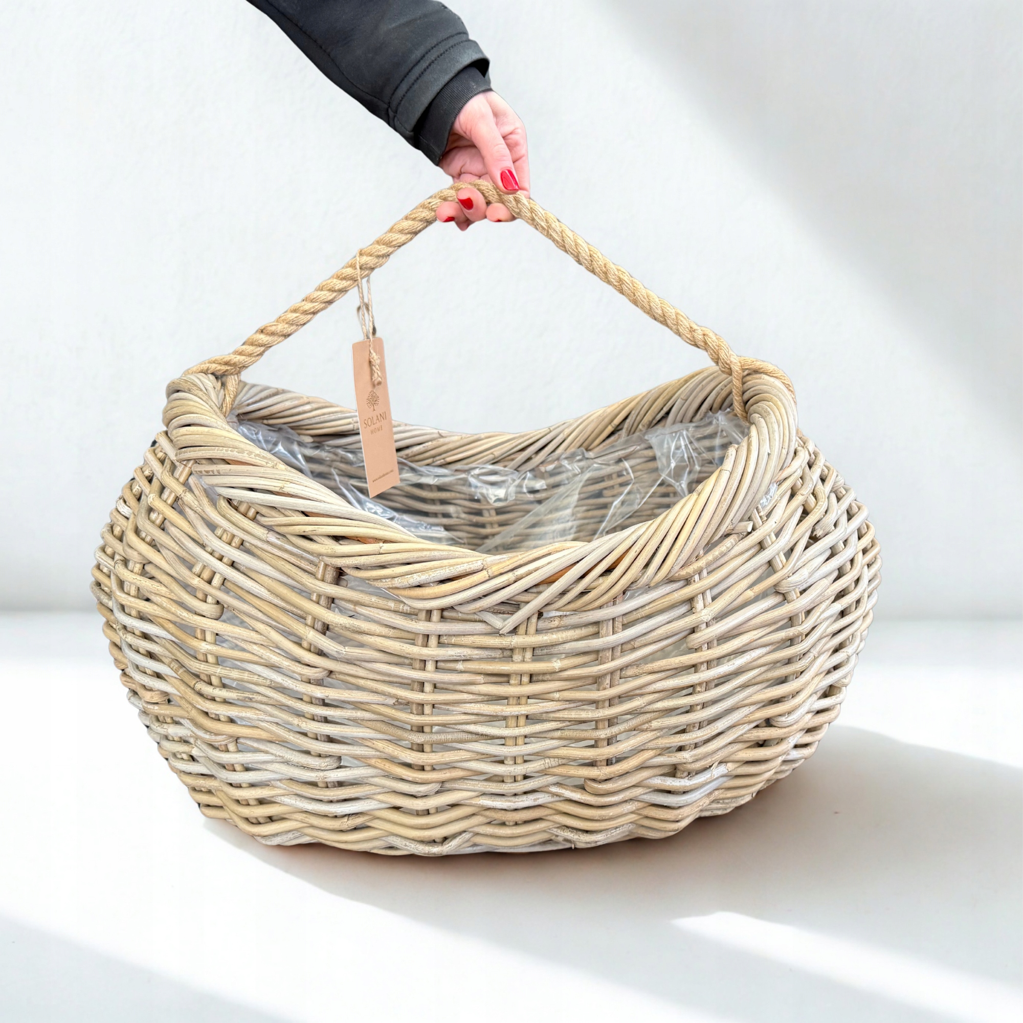 Внутренняя часть корзины оснащена съемной защитной пленкой, которая защищает ротанг от влаги, грязи и грязи. Фольгу можно легко снять, если корзина будет использоваться в полностью натуральной версии.