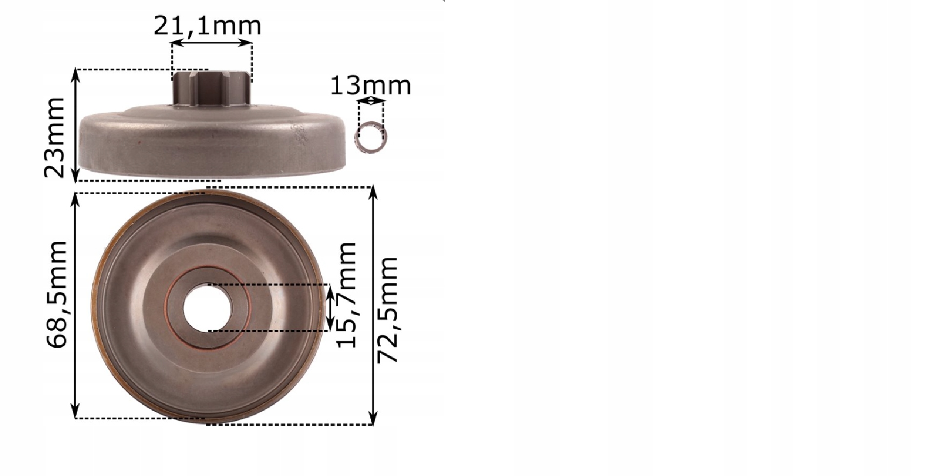 Размеры: 72,5 мм/68,6 мм/23 мм/15,7 мм (целевой диаметр/внутренний диаметр/общая толщина/мишень)