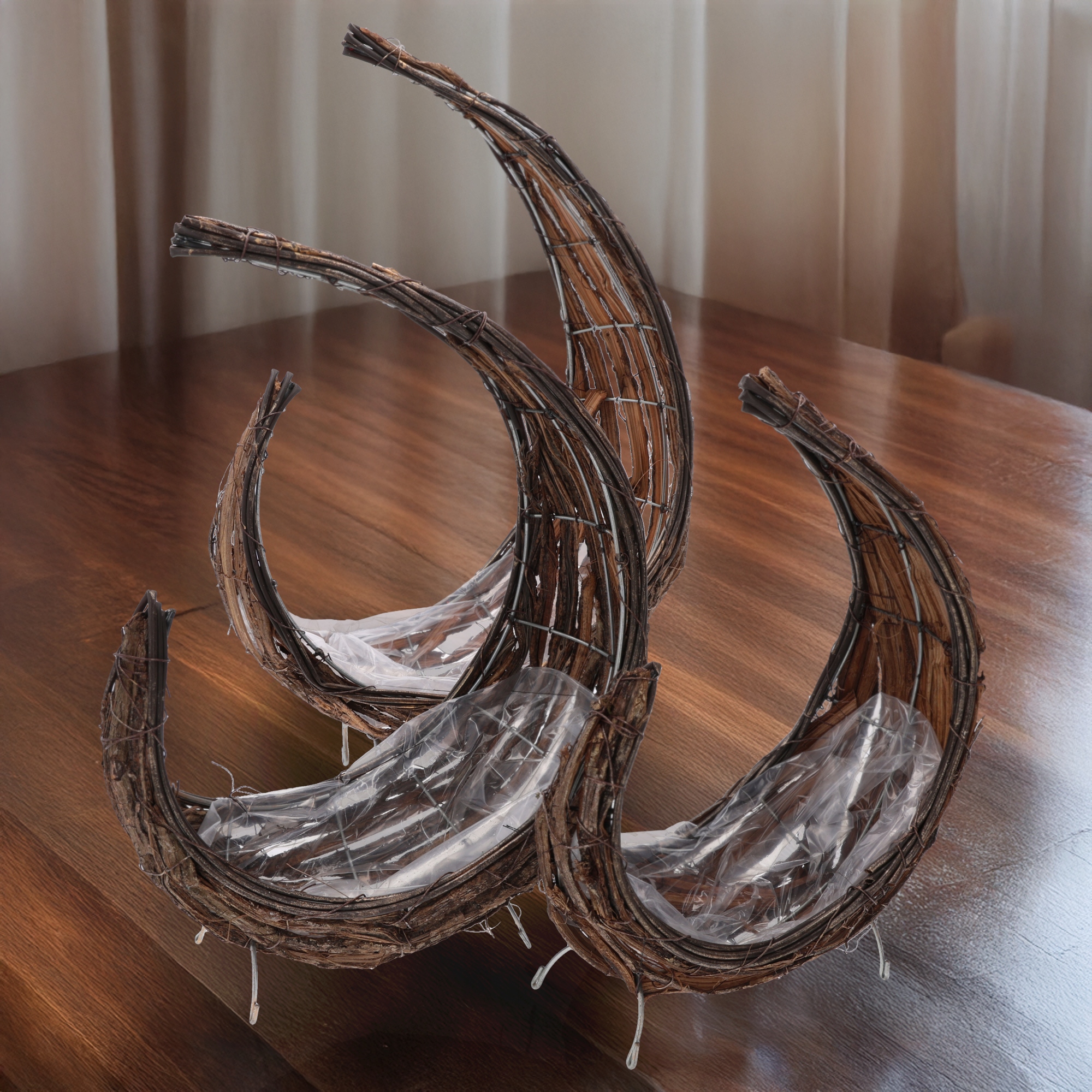 Корзины для композиций из коры, цветочные оболочки, середки, полумесяц, 3 шт.
