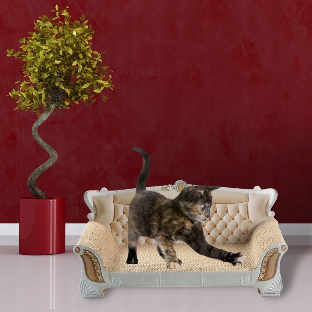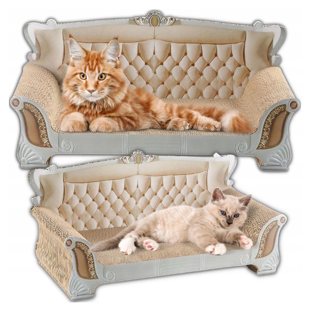 Удобная лежанка: Ваша кошка достойна королевской лежанки, а лежанка в форме эксклюзивного дивана – идеальное место для отдыха и сна. Благодаря мягкой и удобной поверхности из гофрокартона, он обеспечивает кошке комфортное место для отдыха.