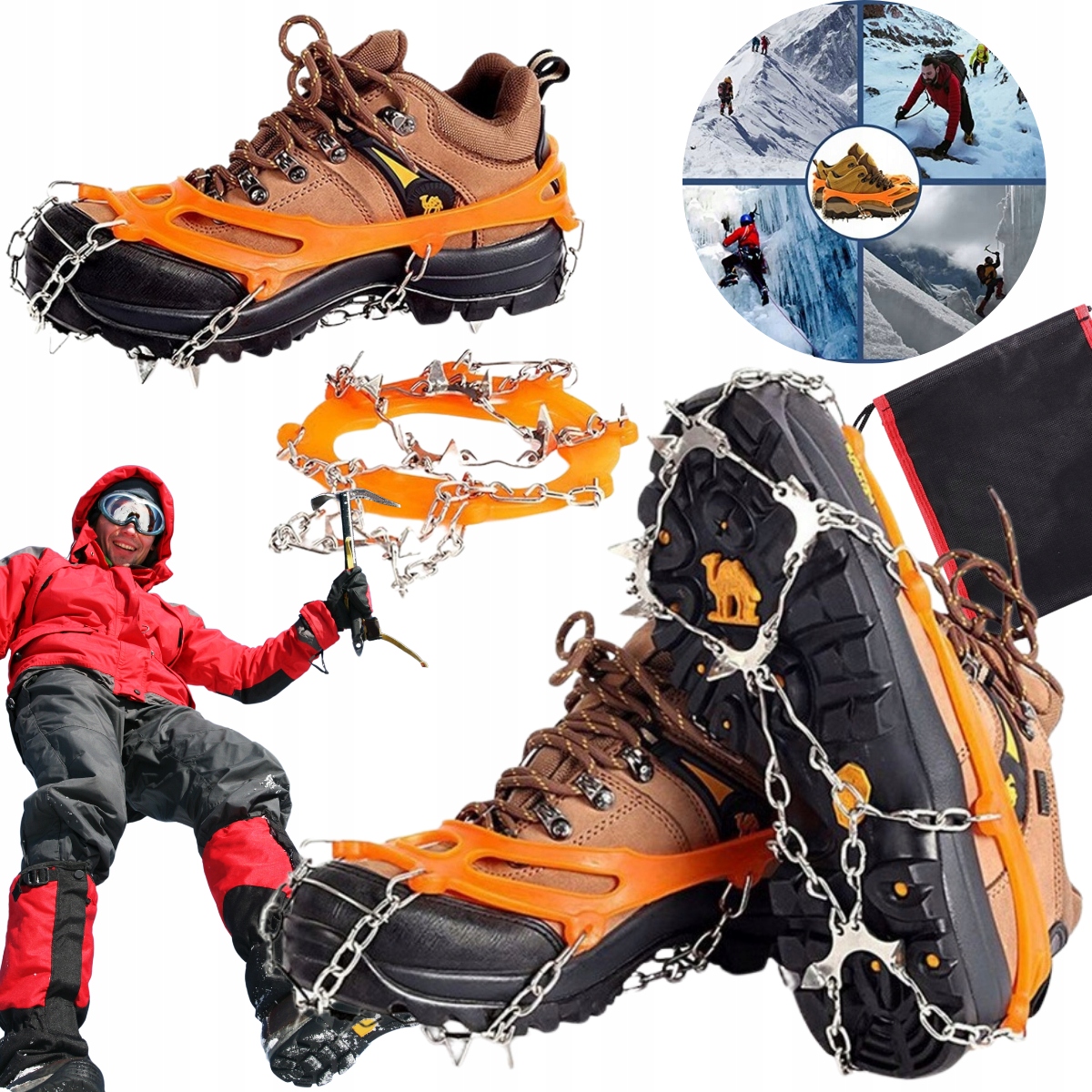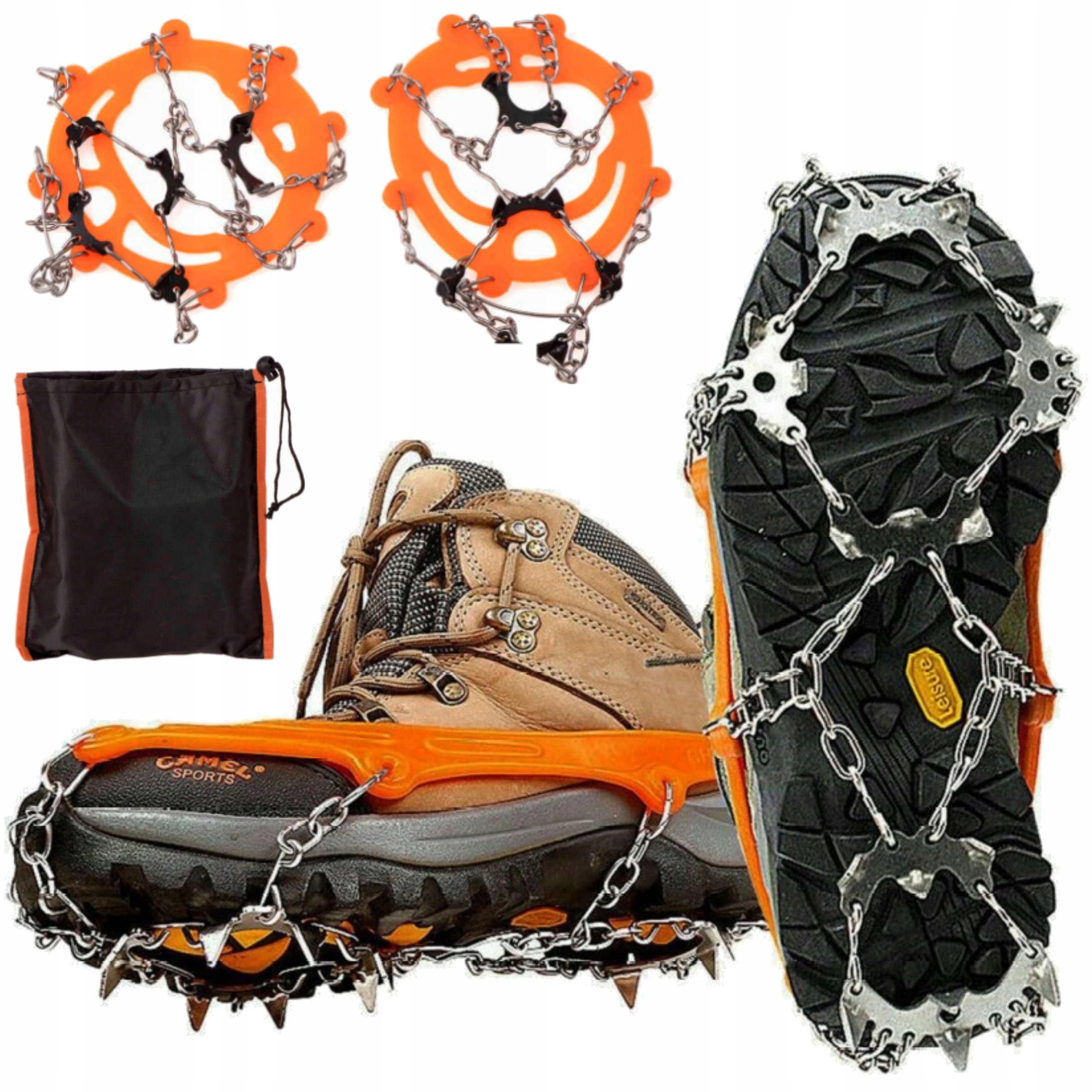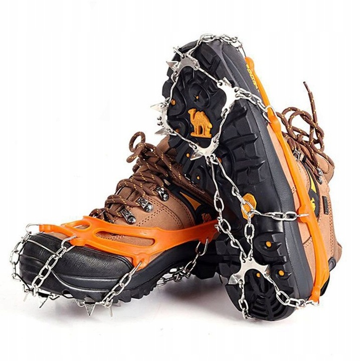 Это шипы, которые прикрепляются к обуви для увеличения сцепления на неровных участках.
