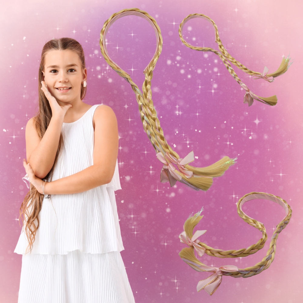 Волосы на повязке представляют собой густую прядь косы красивого светлого цвета. Волосы нежные и разнообразные с помощью СЕРЕБРЯНОЙ НИТИ. Все дело на повязке с очаровательным БАНКОМ на концах косы. Они идеальны как дополнение к повседневному образу, а также для выполнения различных ролей.