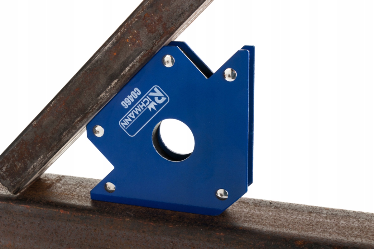 Сварочный угольник, оснащенный постоянным магнитом, используется для быстрого и простого монтажа свариваемых листов, стальных пластин, профилей, труб и т. д., удобен при монтажных работах.