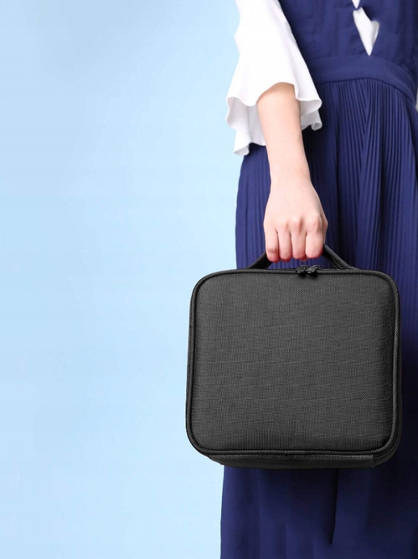 Косметичка оснащена двойной молнией, позволяющей быстро и безопасно открывать и закрывать ее с обеих сторон. Дополнительно кейс имеет ручку, благодаря которой его легче переносить или держать в руке.