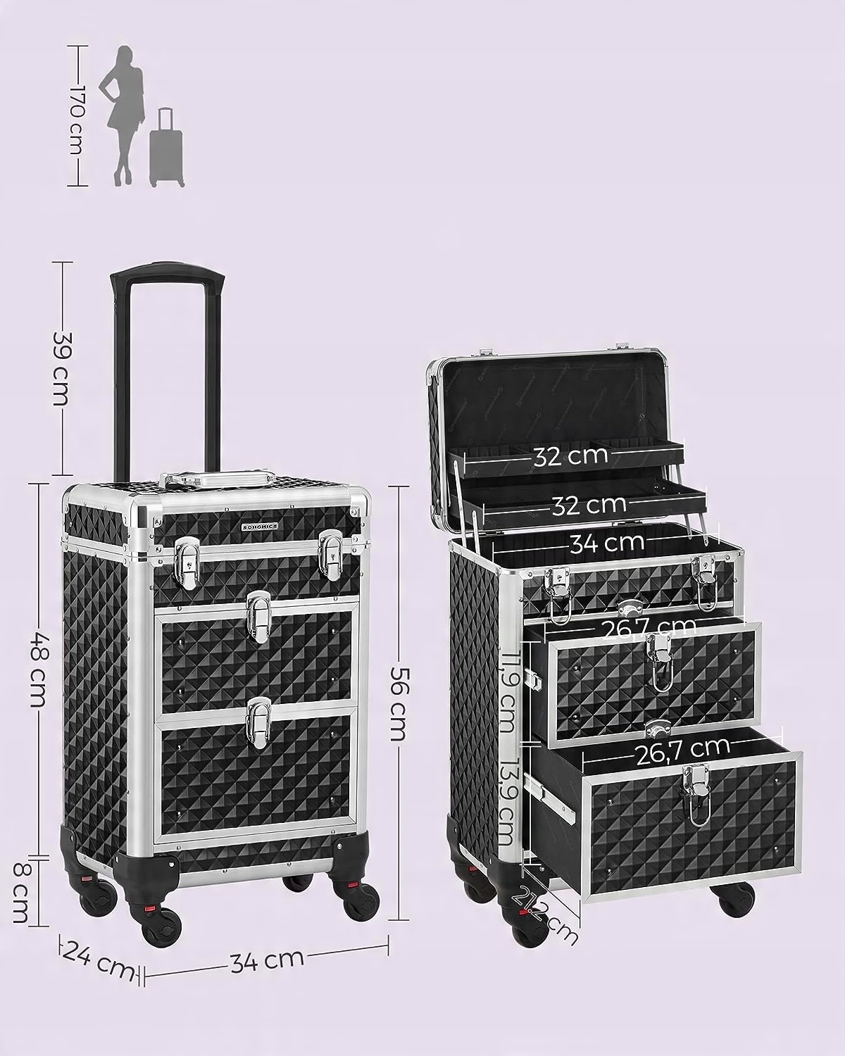 Идеально подходит как на работе, так и дома для хранения косметики, макияжа и парикмахерских принадлежностей.