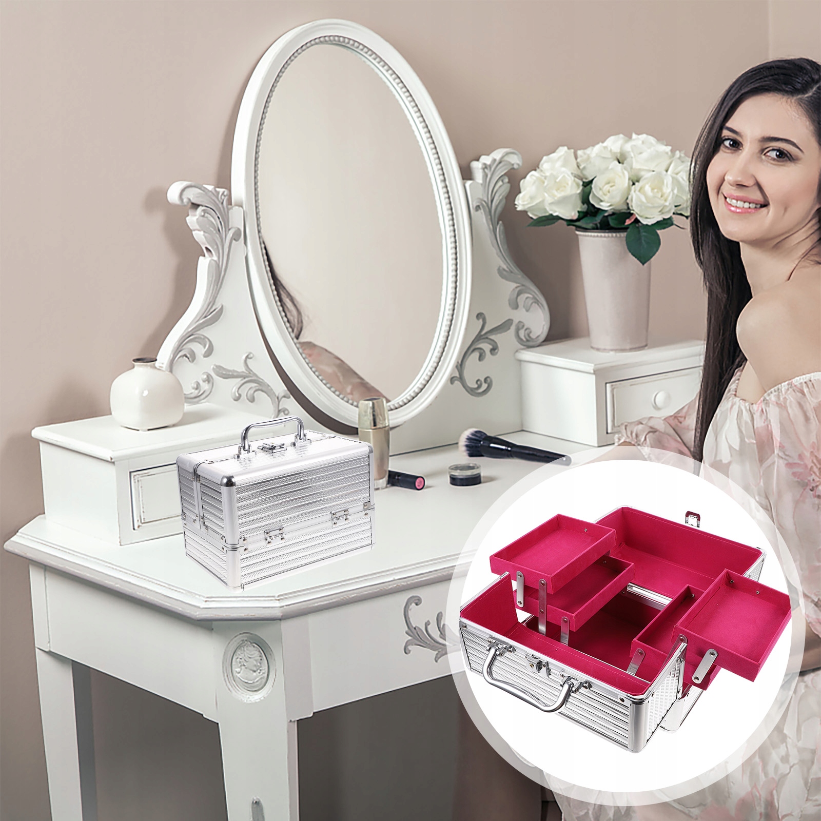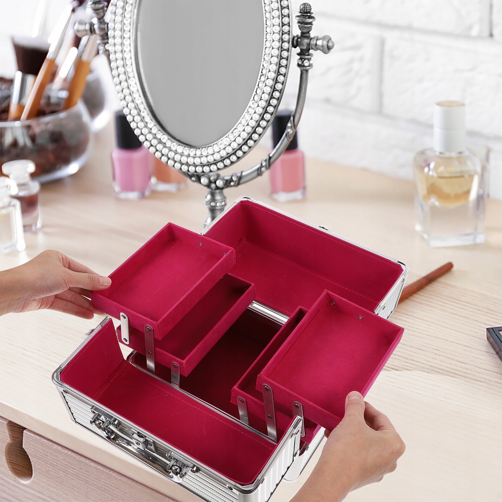 ✅1 * Контейнер для хранения косметики с ручкой из алюминиевого сплава (серебряный ремешок)