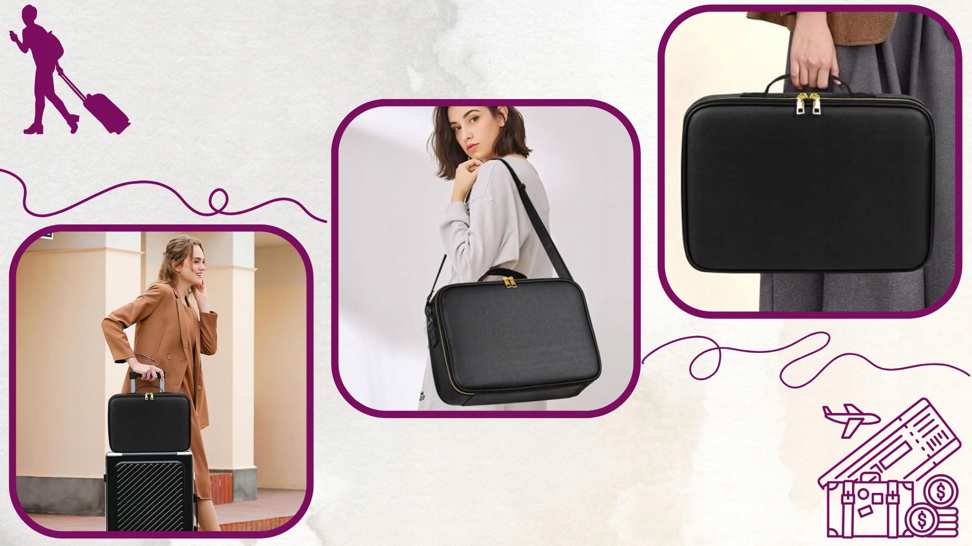 - ✅ на чемодане - специальная багажная ручка, позволяющая положить косметичку на чемодан