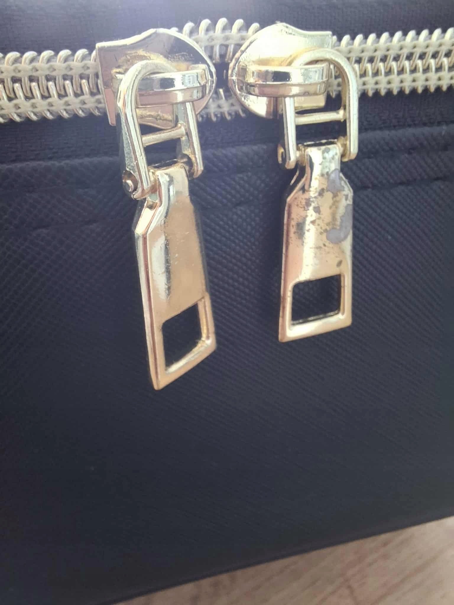 дефекты: пятна на одной молнии (дефект показан на фото) - это никак не влияет на использование, это только визуальный дефект, повреждение находится на одной стороне молнии