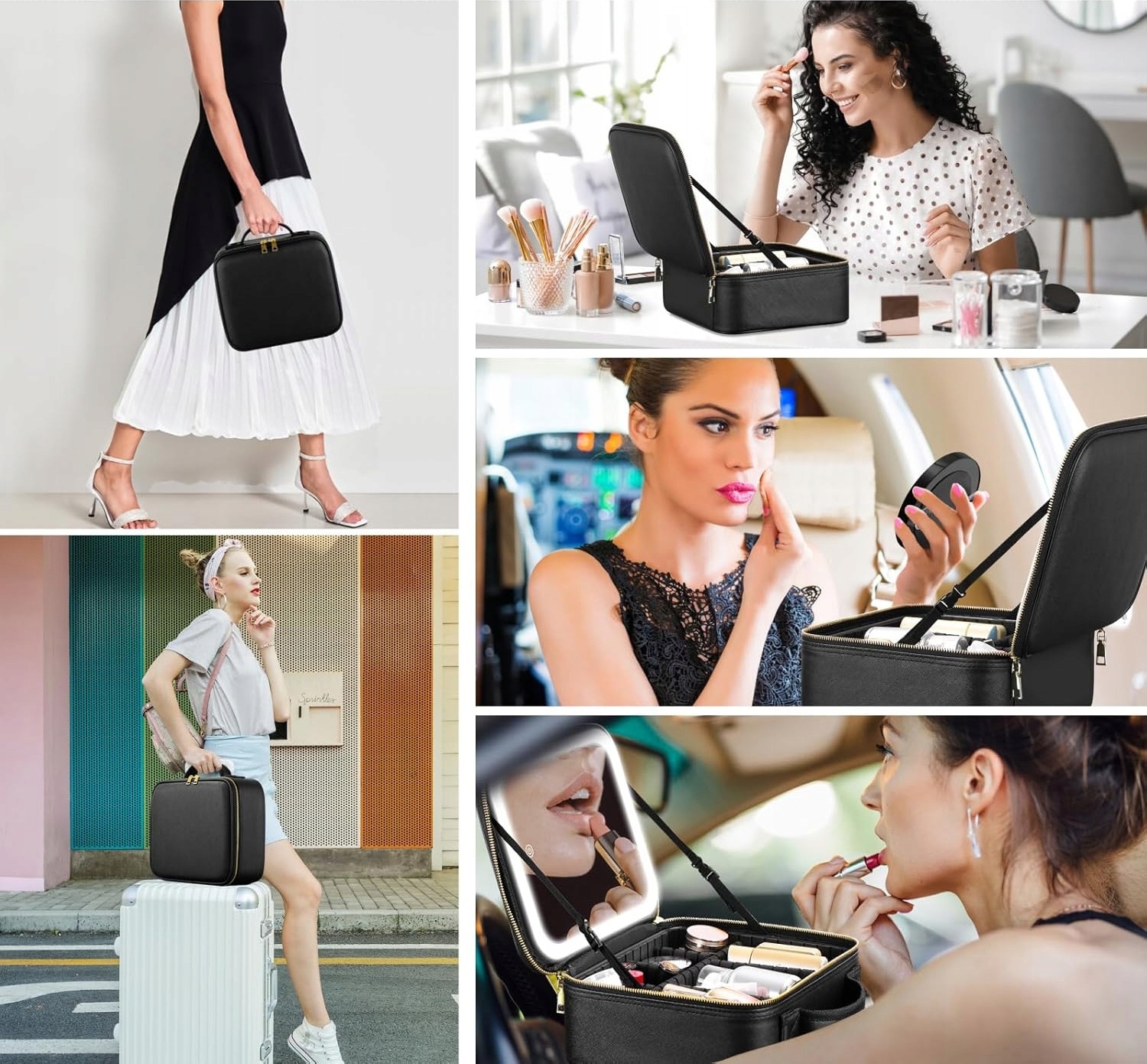 Косметичка с зеркалом со светодиодной подсветкой и органайзером для косметички, черный