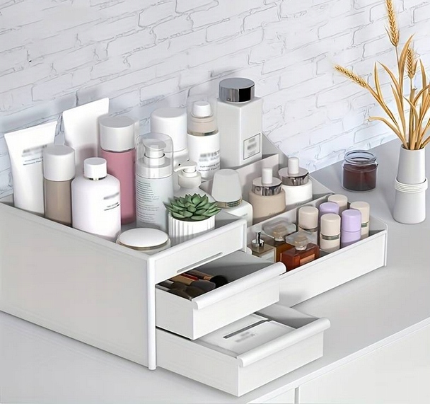 Косметическая коробка организатор полки косметическая сортировка белые 2 ящики