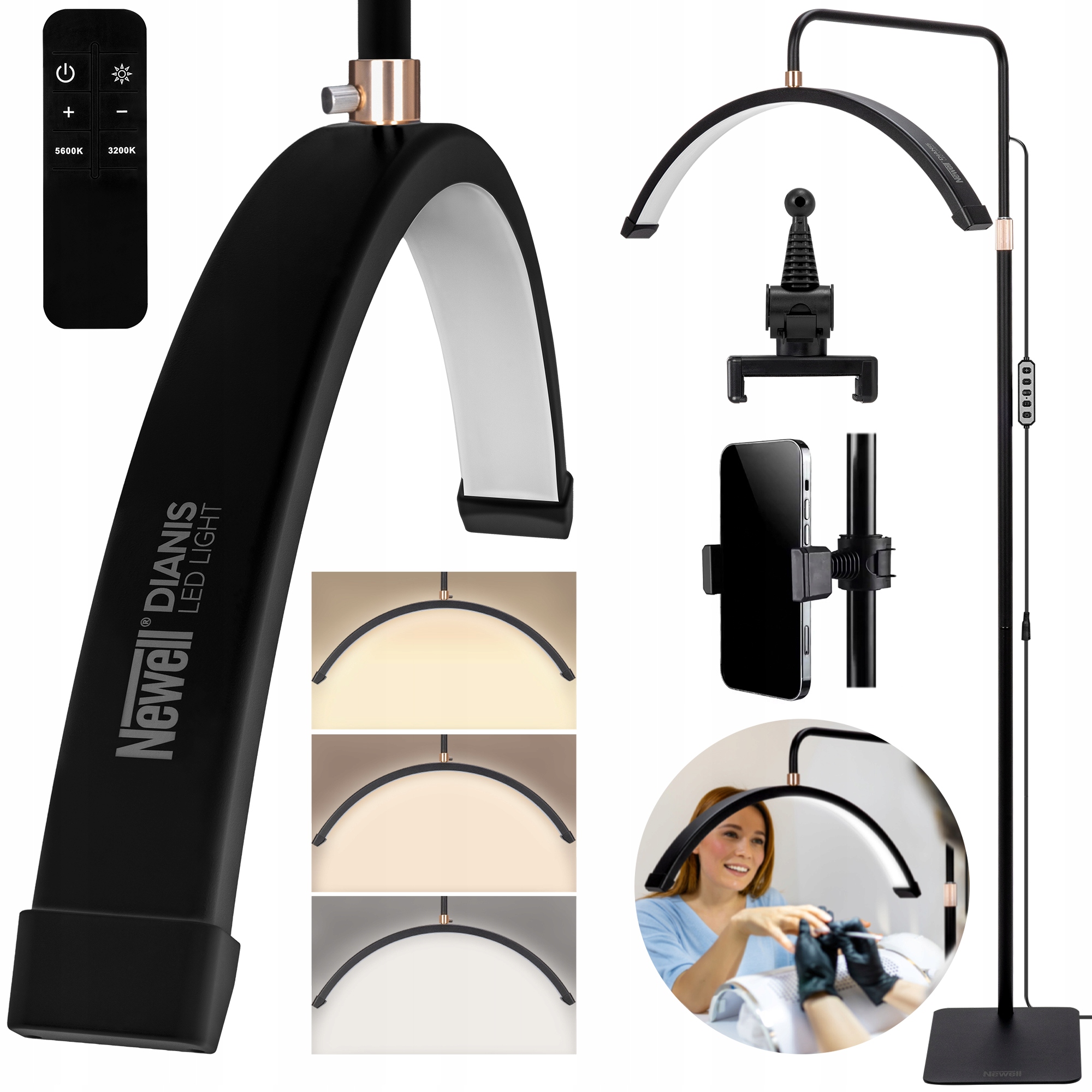 Светодиодная лампа Newell Dianis позволяет точно регулировать мощность и цветовую температуру света, поэтому вы можете легко настроить ее в соответствии со своими потребностями. Диапазон от 3000 К до 7000 К обеспечивает плавный переход от теплого, уютного света через нейтральные, естественные цвета к прохладному освещению, идеальному для работ, требующих максимальной точности. Независимо от того, создаете ли вы макияж, украшаете ногти, записываете видео или фотографируете детали, с этой лампой вы всегда добьетесь идеальных условий работы.