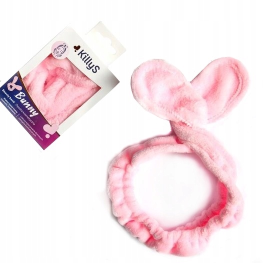 Розовая косметическая повязка на голову с ушками
