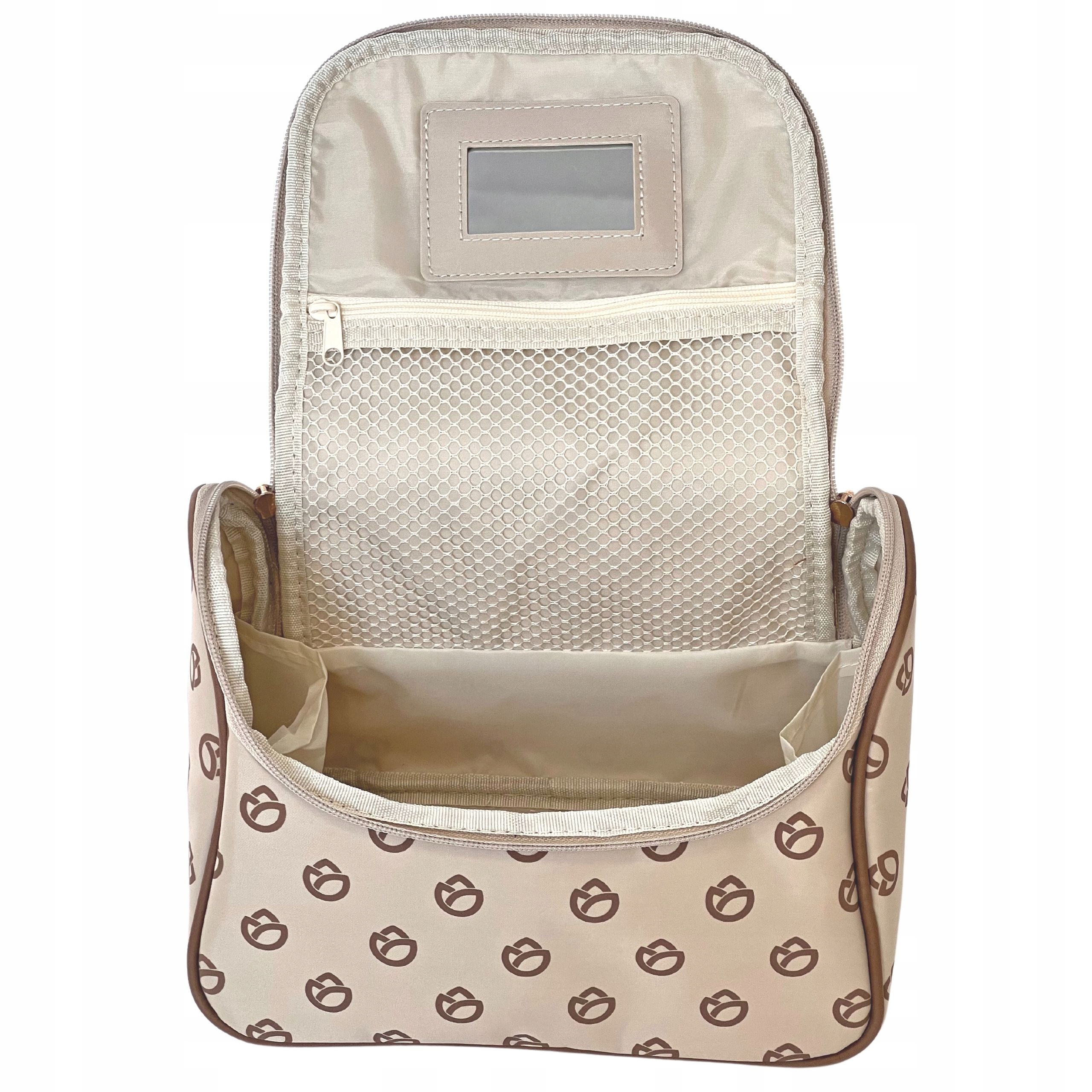 Большая по размеру косметичка со множеством внутренних карманов и органайзеров для косметики. В клапане имеется дополнительный сетчатый карман на молнии для мелких аксессуаров.
