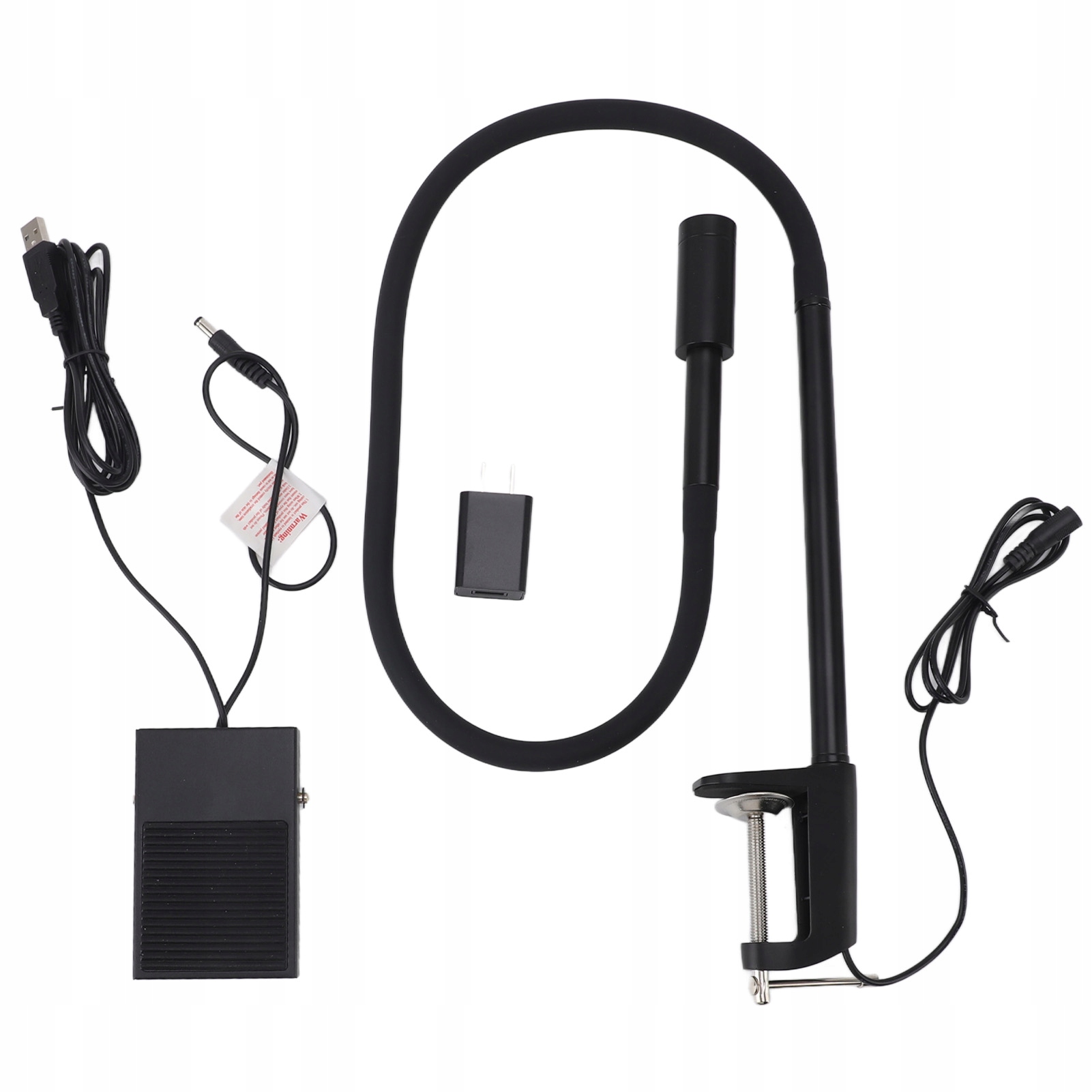 4. Светодиодный фонарь, управляемый ножной педалью: легко включить свет с помощью ножной педали для удобства эксплуатации. Основание настольного зажима для гибкой установки, легко прикрепляется к краю стола для удобства использования.