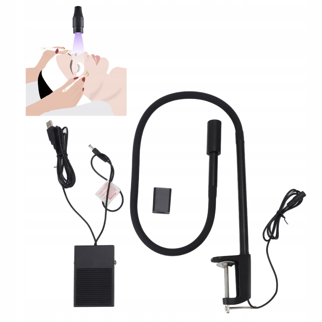 ✅КОСМЕТИЧЕСКАЯ УФ-СВЕТОДИОДНАЯ ЛАМПА 5 Вт ДЛЯ НАРАЩИВАНИЯ РЕСНИЦ ✅УФ-светодиодная настольная лампа Лампа для ресниц с гибким зажимом на гибкой шее Педальное управление Портативная лампа для отверждения клея для салона красоты