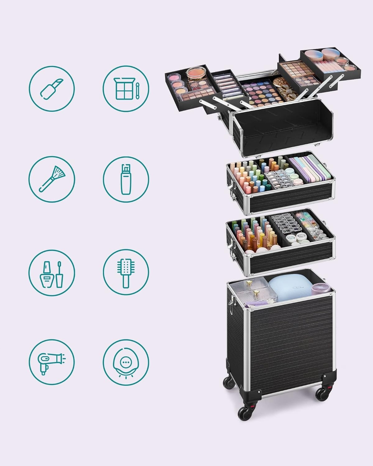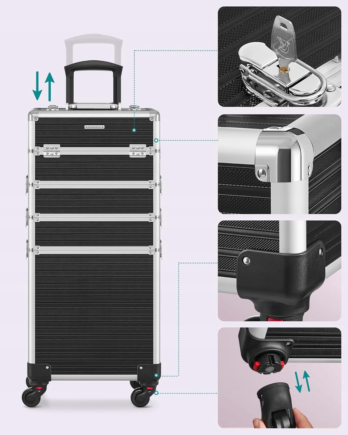 Songmics JHZ015B01 Cosmetics, 4 in 1, очень большой, 34 x 24 x 79,3 см, закрытый, макияж ствол, вращающиеся колеса 360 °, для путешествий, идея подарка, черный, jhz015b01 h1> - [Порядок сортировки] b>. Небольшая косметика, такая как помада и розы, большая большая коробка для фен или ультрафиолетовую лампу для гвоздя. водонепроницаемый и прост в чистке; усилен алюминиевой рамой и пластиком в нижних углах, твердые и устойчивые к ударам; Телескопическая усиленная ручка, стабильная и долговечная
