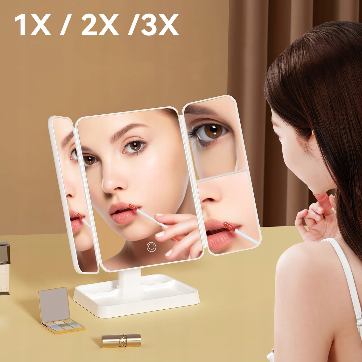 Косметическое зеркало для макияжа с освещением, с увеличением 1x/2x/3x