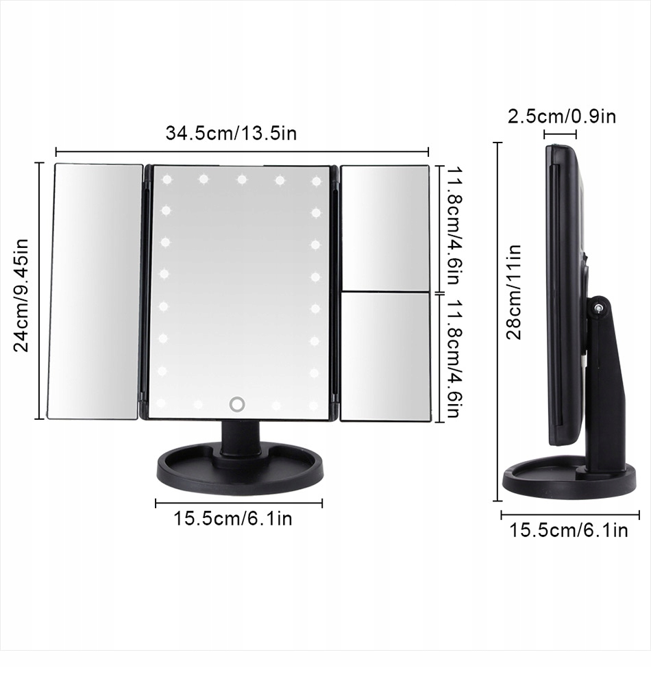 - Размеры зеркала в разложенном виде (длина/ширина/высота): 11,5/35/28,5см.