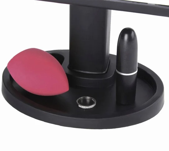 Зеркало имеет устойчивое основание с углублением, которое является идеальным местом для различной косметики, которую хочется всегда иметь под рукой.