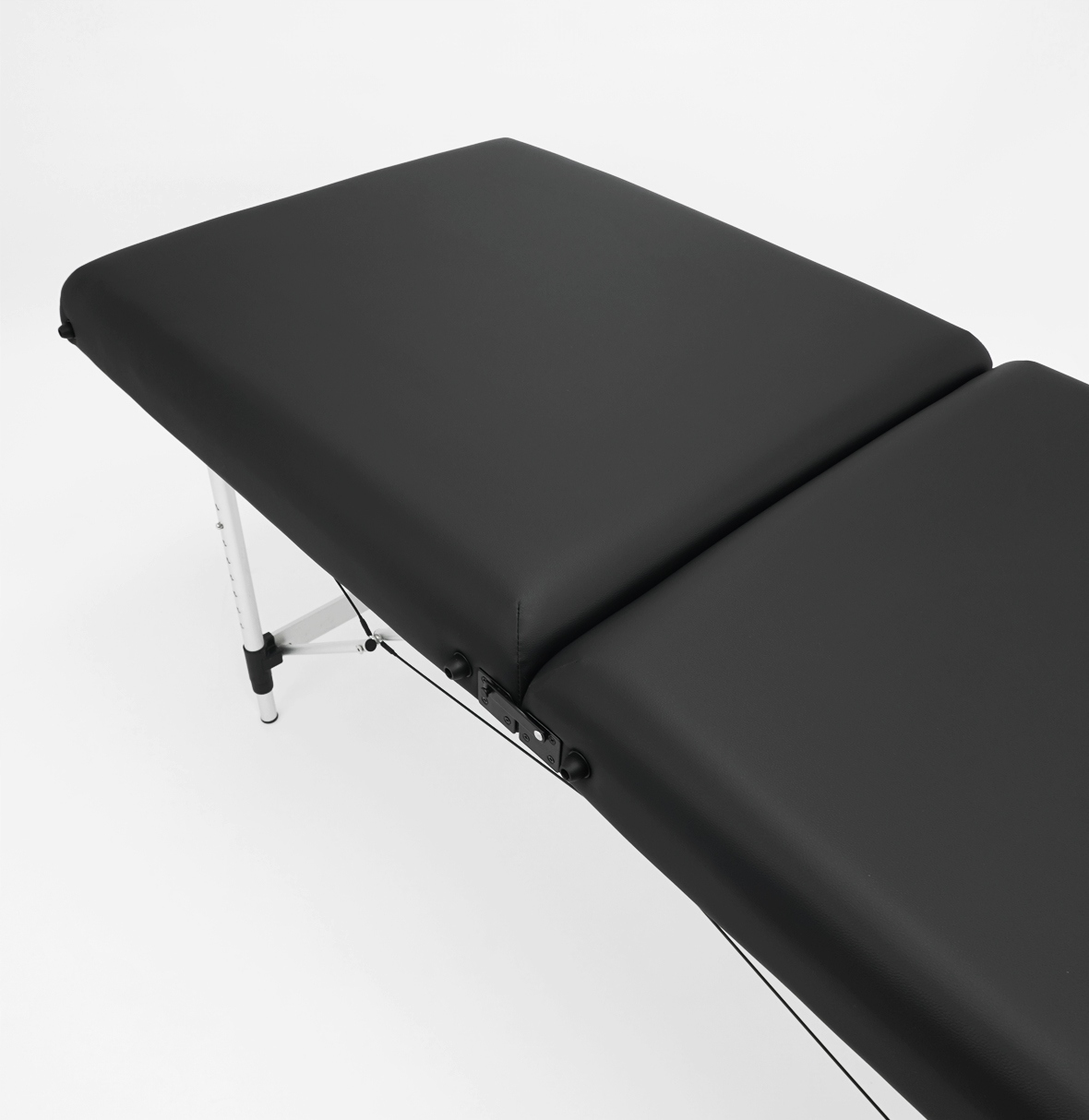 Уникальными свойствами стола являются малый вес, достигаемый за счет использования алюминиевых компонентов и конструкция, позволяющая свободно размещать ножки под столешницей.
