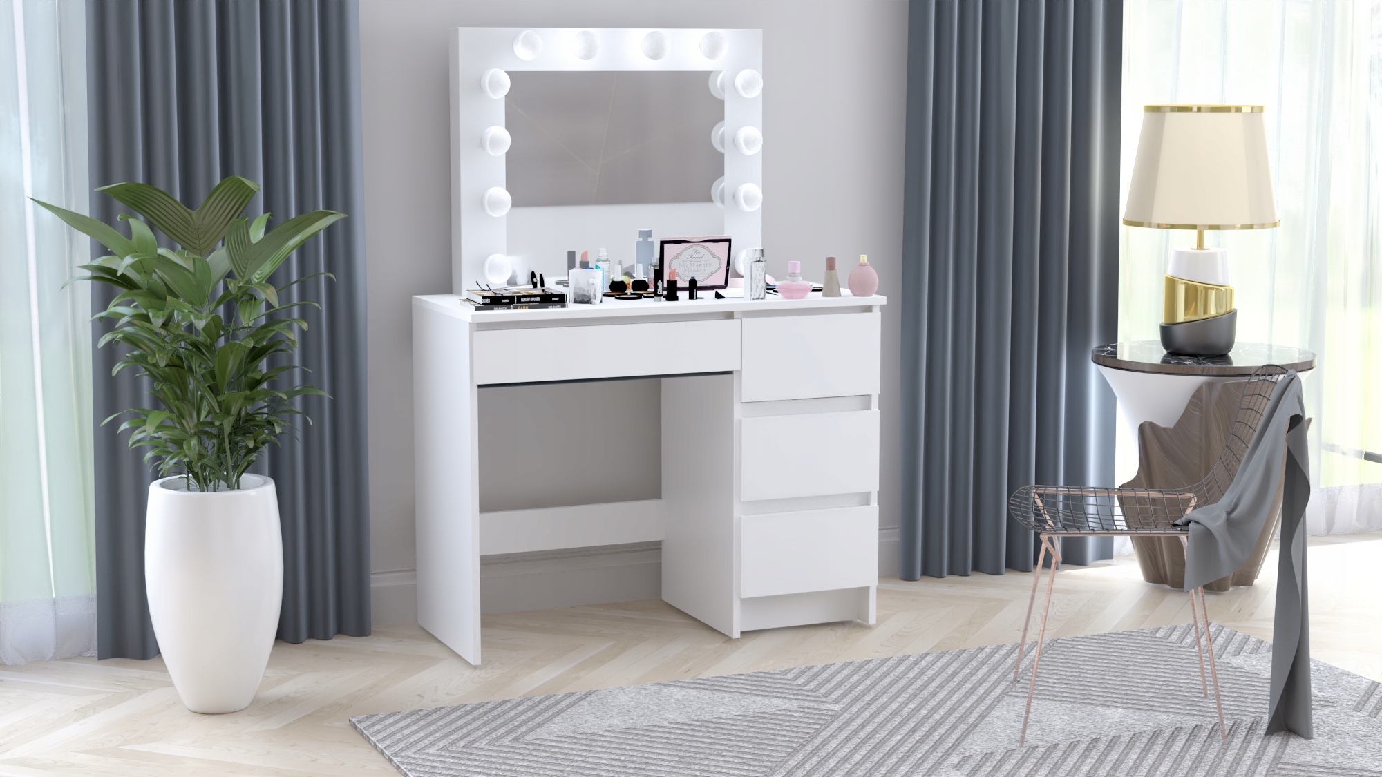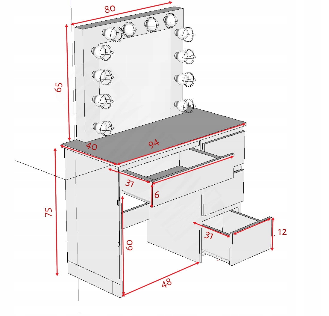 ГОЛЛИВУДСКИЙ СТОЛИК BETI4 С ЗЕРКАЛОМ И СВЕТОДИОДНОЙ ПОДСВЕТКОЙ – ДЛЯ МАКИЯЖА И ВИЗАЖА – ПОЛЬСКОЕ ПРОИЗВОДСТВО