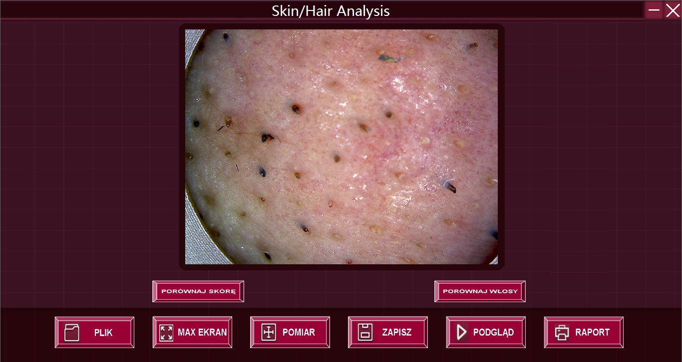 <р>1. Делаем качественную фотографию выбранного участка кожи/волос. <р>2. Измерение интересных деталей. <р>3. Заморозьте фотографию на экране для более детального анализа.4. Загрузка фотографии с диска для сравнения.