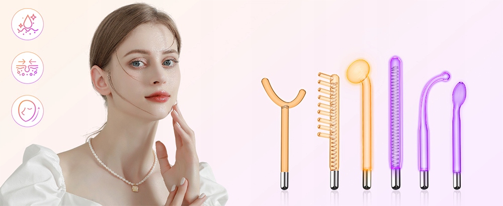 Это высокочастотное устройство для терапии лица оснащено шестью стеклянными трубками для удовлетворения ваших различных потребностей. Тюбик-гриб подходит для щек, лба и подбородка. Изогнутая трубка подходит для узких участков, таких как нос. Язычная трубка предназначена для глаз и рта. Трубка-гребень для кожи головы. Прямая трубка подходит для плоских частей тела. Y-образная трубка используется для области шеи и плеч.