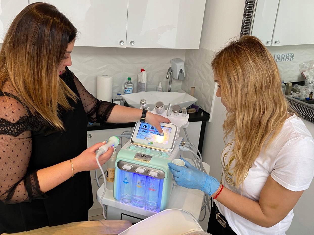 Кислотно-витаминное очищение кожи. микродермабразия проводится с использованием высокого давления воды с отшелушивающими веществами или витаминными смесями, в результате чего кожа становится гладкой, сияющей, увлажненной, напитанной и свежей.