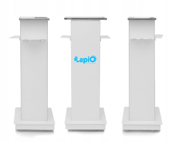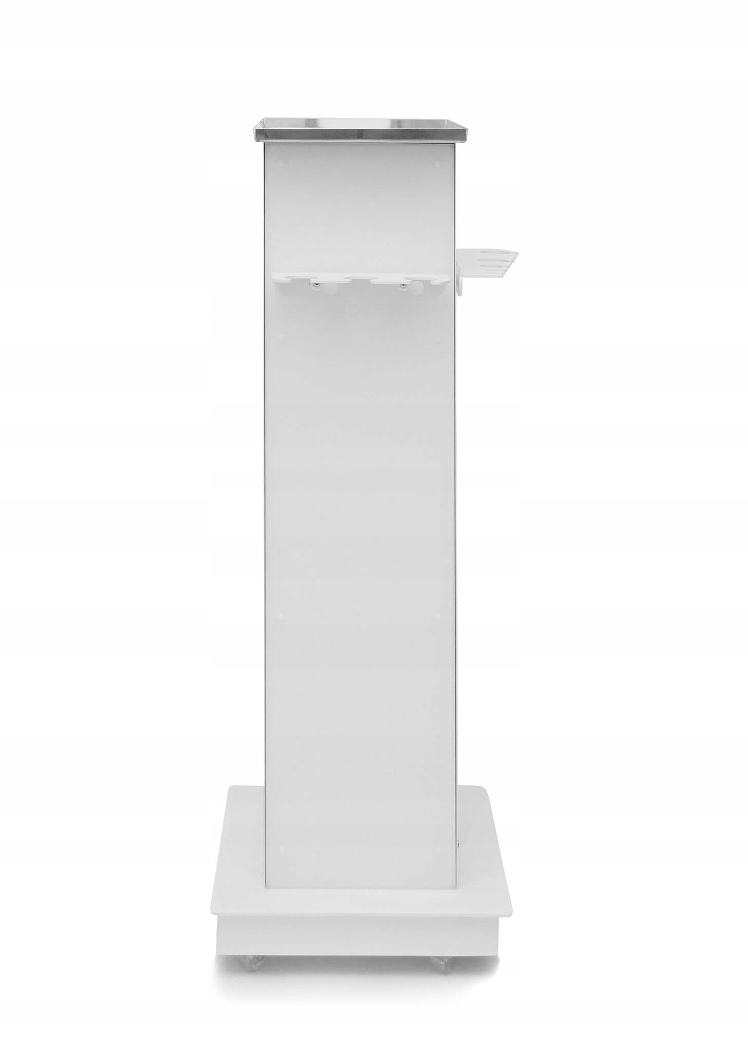 Подставка для косметического комбайна имеет удобные держатели для лечебных насадок. Он остается полностью мобильным благодаря встроенным колесам.