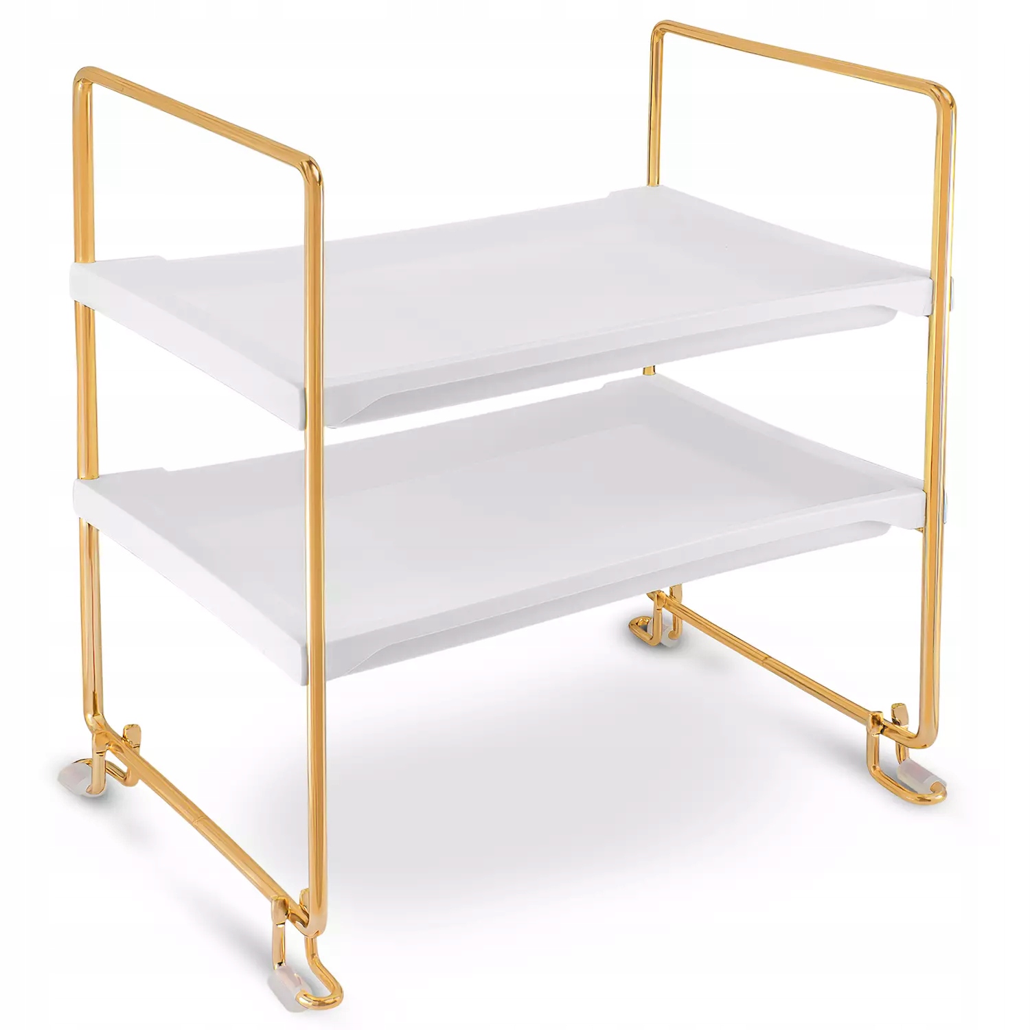 Органайзер имеет 2 полки, их регулируемая высота. Вы можете регулировать расстояние между полками, чтобы разместить косметику разного размера и высоты. Благодаря этому вы получаете полную гибкость и можете адаптировать организацию к своим потребностям.