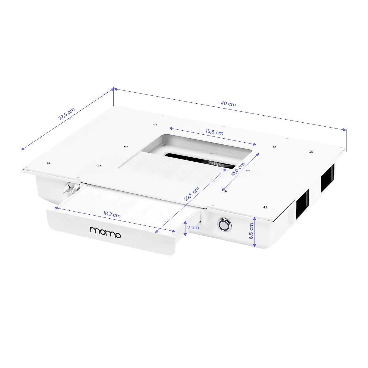 Встроенный в столешницу кассетный пылепоглотитель Momo J-02 значительно повышает комфорт и гигиену работы, эффективно удаляя пыль, образующуюся во время косметических процедур, например, маникюра. Благодаря этому устройству воздух в салоне остается чистым, а рабочее место свободным от загрязнений, что повышает безопасность как косметолога, так и клиентов. Пылесборник прост в использовании и обслуживании, что еще больше повышает его функциональность. Регулярная очистка и замена фильтра обеспечивают стабильно высокую эффективность поглощения. Возможно приобретение дополнительных сменных фильтров (Артикул 123581). Также наш магазин предлагает фильтр с активированным углем (артикул 123582), который эффективно устраняет аллергены и микроорганизмы, повышая уровень гигиены в салоне.
