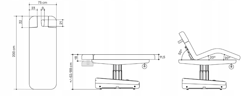 - 3 мотора, регулирующих высоту, спинку и подножку