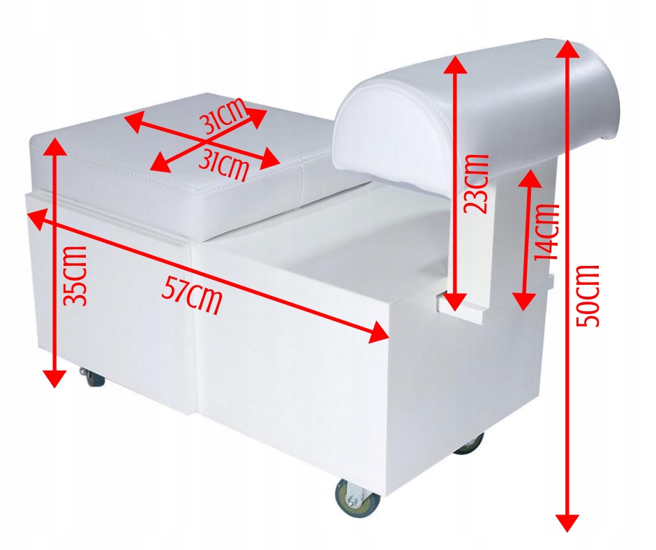 Пуф оснащен ящиком для аксессуаров, используемых во время услуги. Это оптимизирует процесс лечения, уменьшая необходимость постоянно обращаться к инструментам. В ящике можно разместить основные косметические предметы, такие как пилки, ножницы, щипцы и одноразовые предметы.