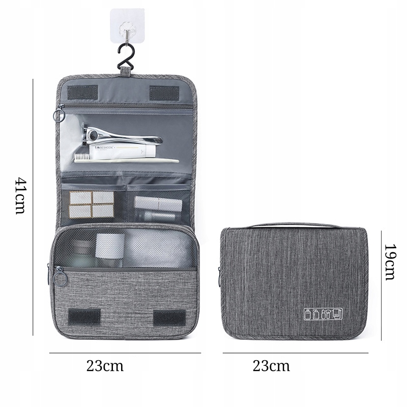 МУЖСКАЯ ЖЕНСКАЯ ДОРОЖНАЯ КОСМЕТИЧЕСКАЯ СУМКА, ПОДВЕСНАЯ СУМКА-ОРГАНИЗАТОР С КРЮЧКОМ, СЕРАЯ