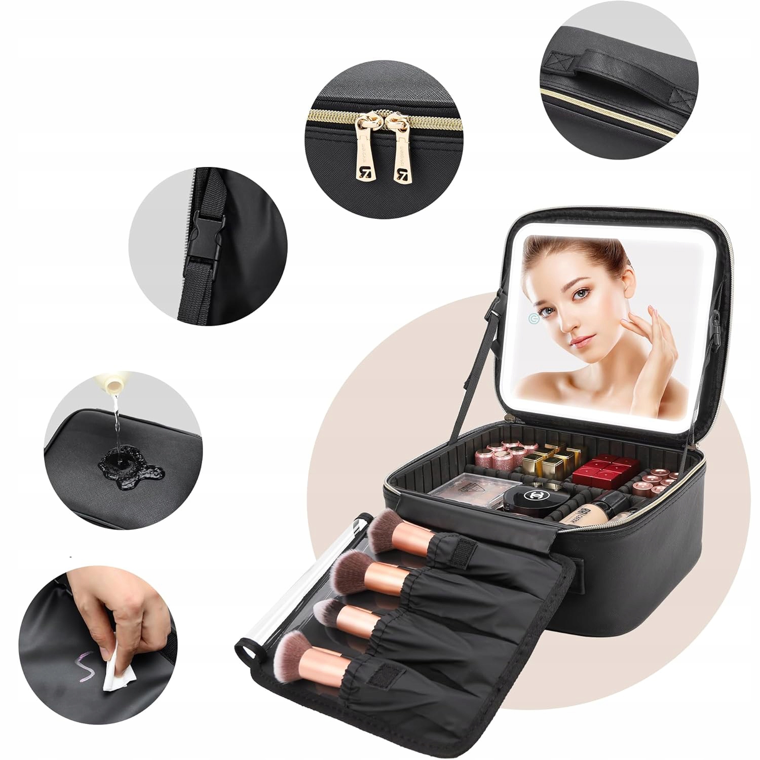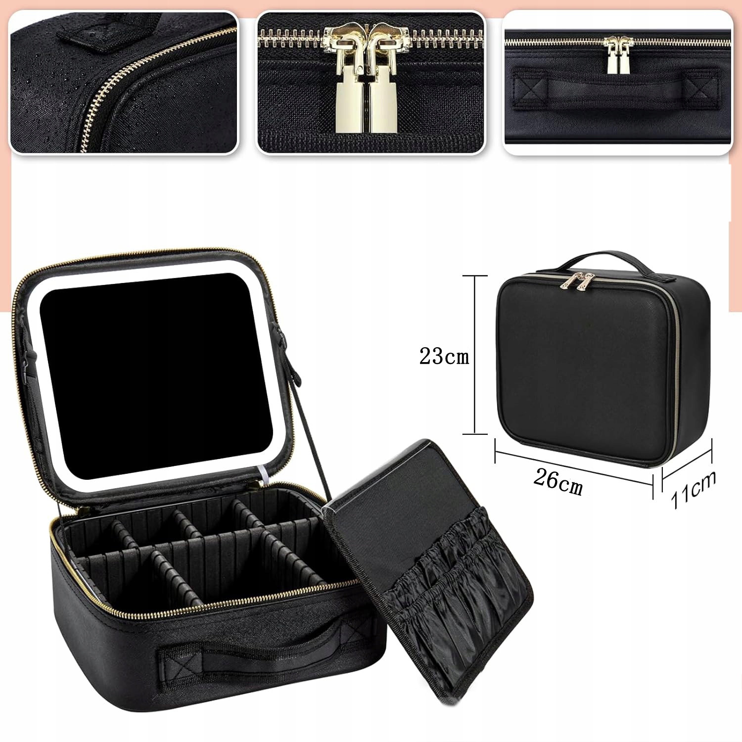 изготовлено из износа, царапин, водонепроницаемой и пылепроницаемой кожи паба, обеспечивая отличную защиту для косметики и аксессуаров.