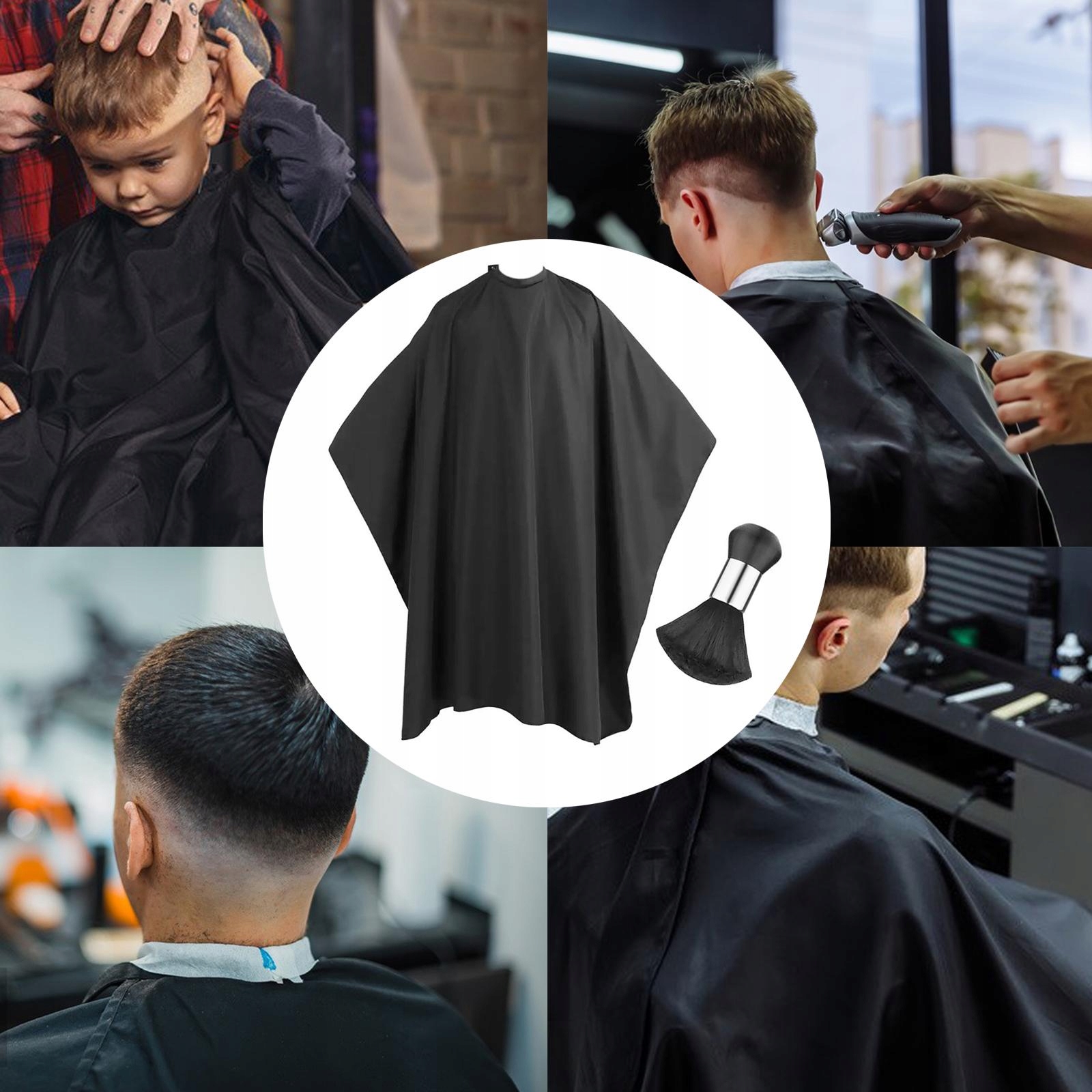 Набор включает в себя: 1 кусок салона для стрижки 160x140 см/62,99x5.12 дюйма 1 кусок пылевой щетки на шее 14,5x5,5 см/5,71x2,17 дюйма