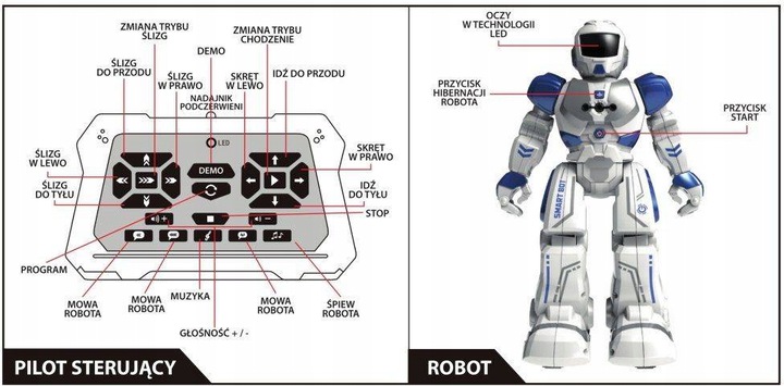 Чрезвычайно интересной функцией является опция ПРОГРАММА. После нажатия этой функциональной клавиши мы можем запрограммировать робота или воспроизвести ранее запрограммированные последовательности. Программирование включает в себя до 15 движений и функций робота, благодаря которым Кнабо можно весело танцевать. Повторное нажатие кнопки ПРОГРАММА заставит Knabo воспроизвести запомненную танцевальную последовательность.