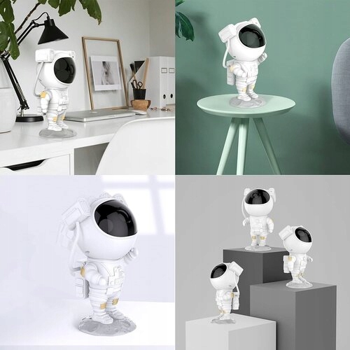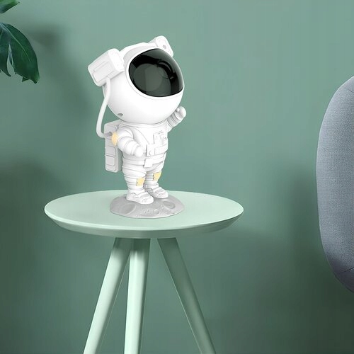 Проектор в виде астронавта имеет магнитную вращающуюся головку, которая позволяет вам направлять свет на любую часть комнаты. Это не только практическое решение, но и стильный декоративный элемент, который идеально подходит для современных интерьеров.