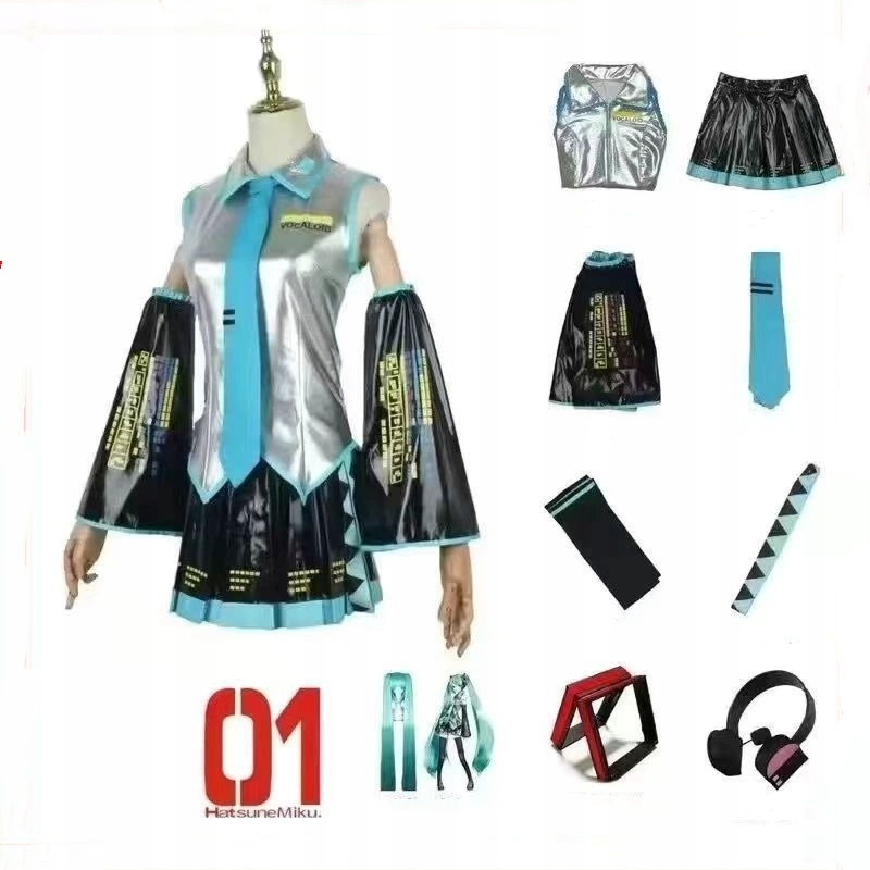 Косплей Хэцунн Мику Хэллоуин Полный костюм (вместе с париком) синий