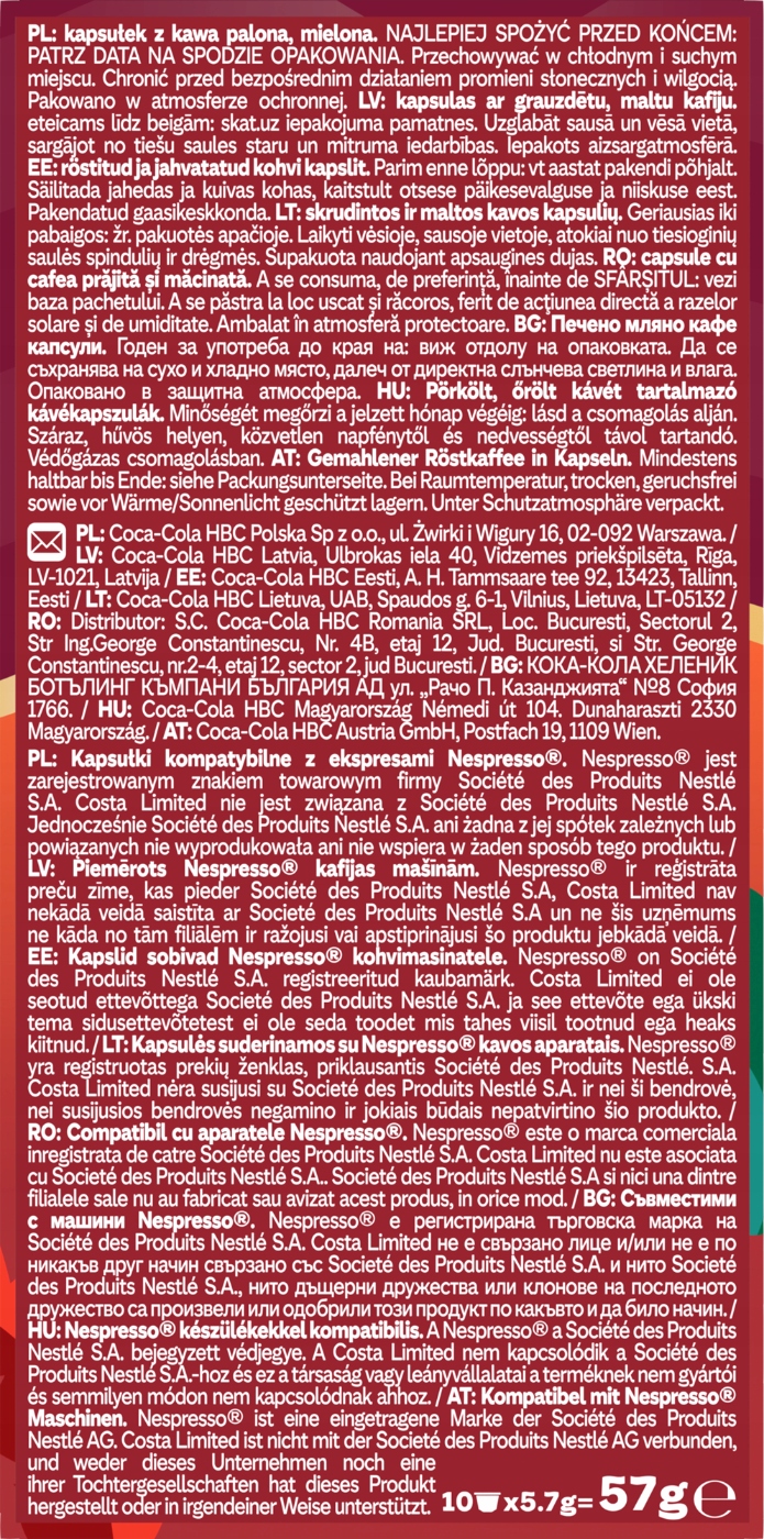 Costa Smenting Blend - это уникальная смесь кофе в виде капсул, разработанных специально для любителей интенсивного ароматического аромата кофе. Капсулы совместимы с кофейными машинами, что позволяет быстро и удобно готовить напиток.