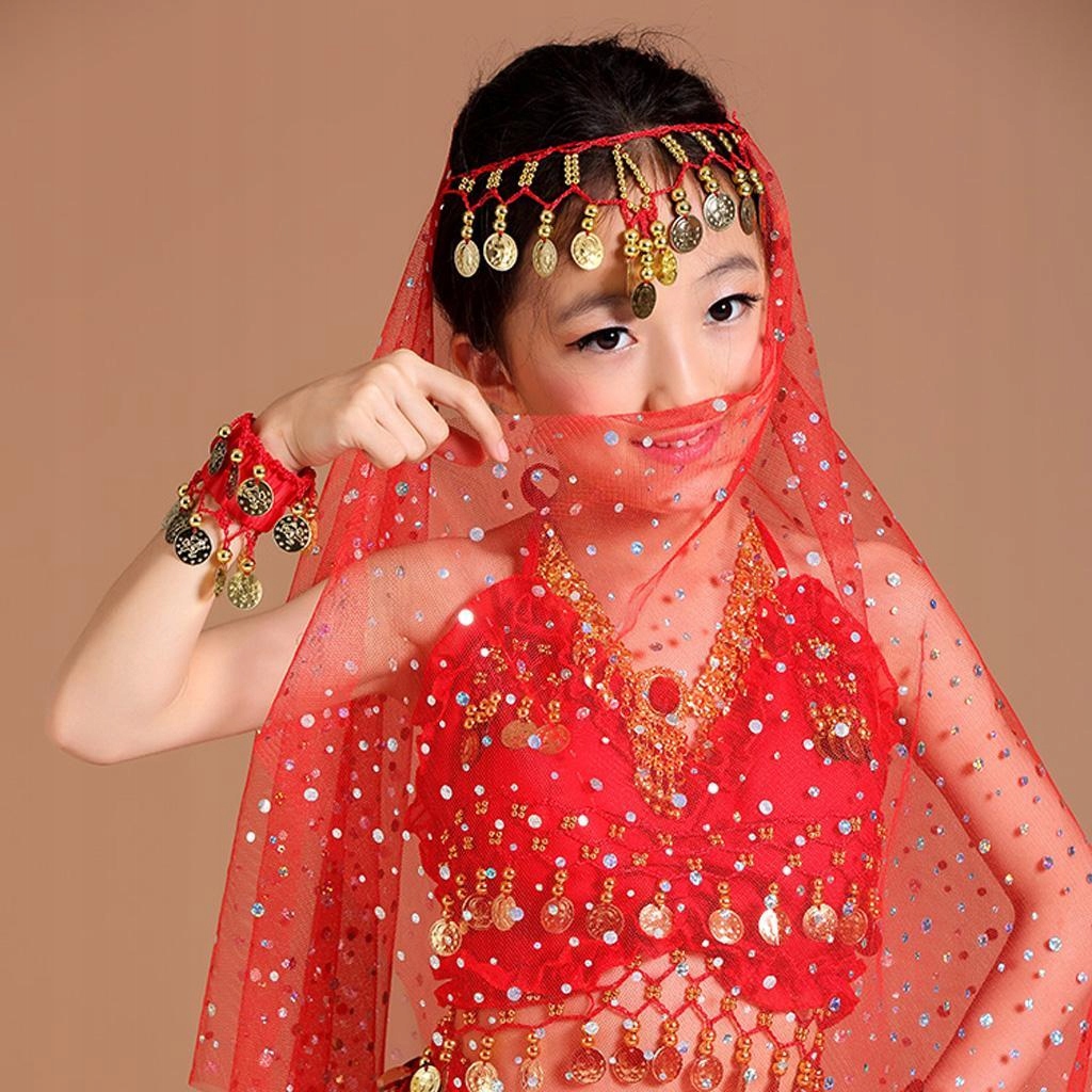 Kostium do tańca brzucha dla dzieci, spódnica z frędzlami, chusta na biodra, zestaw M Czerwony