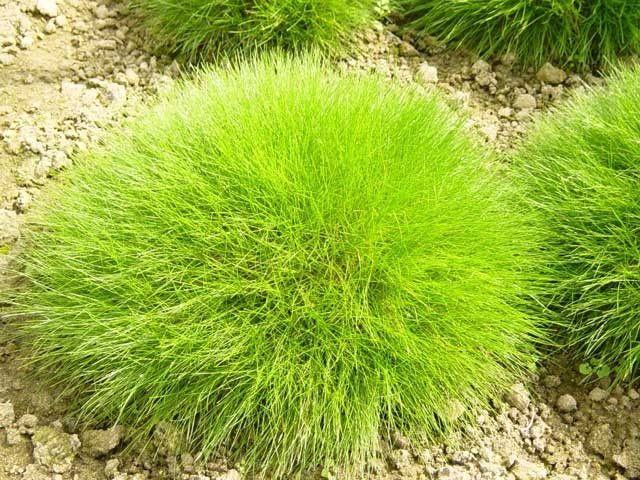 Вероятно, самая популярная Festuca, легко растущее, привлекательное растение. Маленькие, узкие листья. Он хорошо растет в плохих землях, в том числе щелочных, с хорошим дренажом, предпочтительно на полном солнце. Очень красиво сочетается с другими травами и укреплениями, имея аналогичную высоту. Идеально подходит для скалистых садов, наземного покрытия и трассы, пасьянья. Засуха и морозы устойчивы. Высота 30 см, диаметр 60 см. Не теряет листья на зиму.