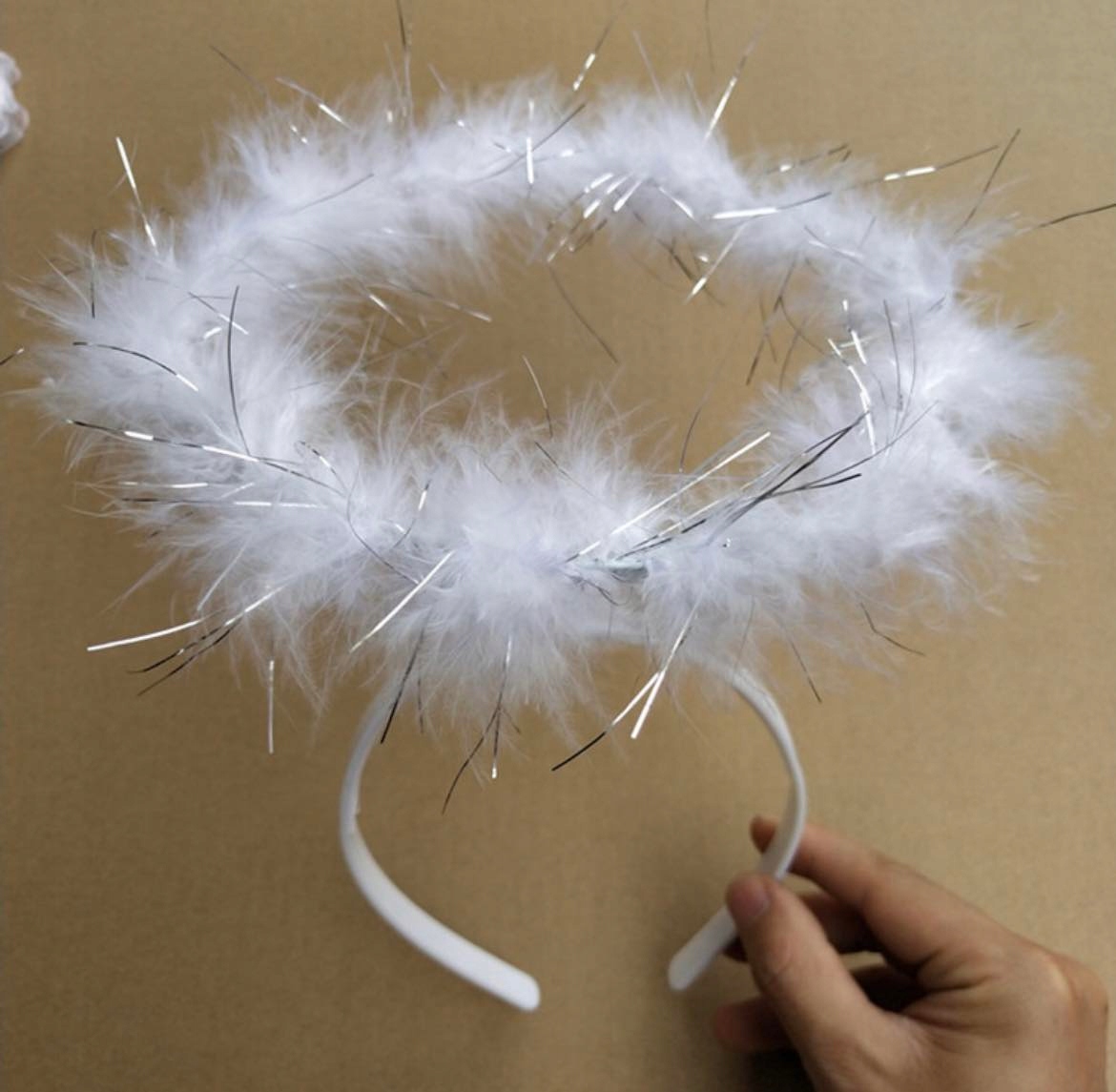 ✅ Оголовье: нимб, украшенный пушистыми настоящими перьями и серебром нитки, универсальный размер,