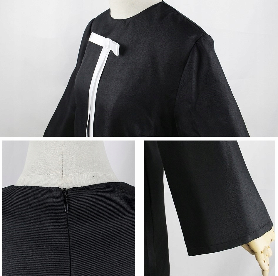 - Платье черного цвета с белым бантом.